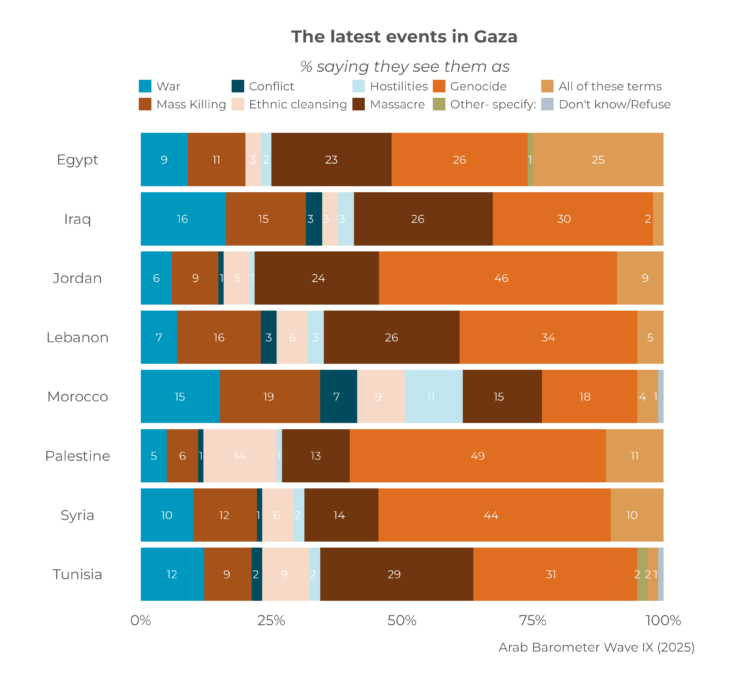 The central shift since October 7 is not that Iran has transformed its regional image, but that the political context around it has changed. Israel’s military campaign in Gaza and the broader escalation across the Middle East have altered how MENA publics perceive regional and international actors. Iran has paired rhetorical support with humanitarian assistance, including aid directed at Palestinian civilians, but Israel’s conduct in Gaza have increased the salience of the Palestinian issue as images from this war have appeared on TV and social media across the region. As a result, support for the foreign policy of Iran’s late leader rose more sharply than favorability toward Iran itself.